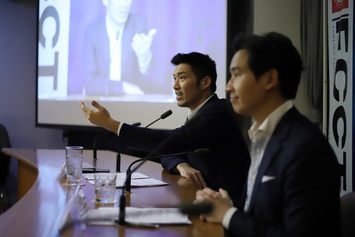 ที่สมาคมผู้สื่อข่าวต่างประเทศแห่งประเทศไทย (FCCT) ธนาธร จึงรุ่งเรืองกิจ และพิธา ลิ้มเจริญรัตน์ ได้รับเชิญมาพูดคุยในหัวข้อ “After Future Forward: What now for the opposition in Thailand? หลังจากอนาคตใหม่ : จะเกิดอะไรขึ้นกับฝ่ายค้านในประเทศไทย”