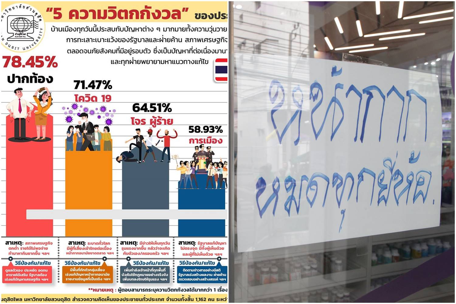ดุสิตโพลเผยเรื่องที่คนไทยวิตกกังวลมากสุด พบ ปัญหาปากท้อง-ไวรัสระบาด มากสุด ตามมาด้วยปัญหา โจรผู้ร้าย-การเมือง และธุรกิจท่องเที่ยว