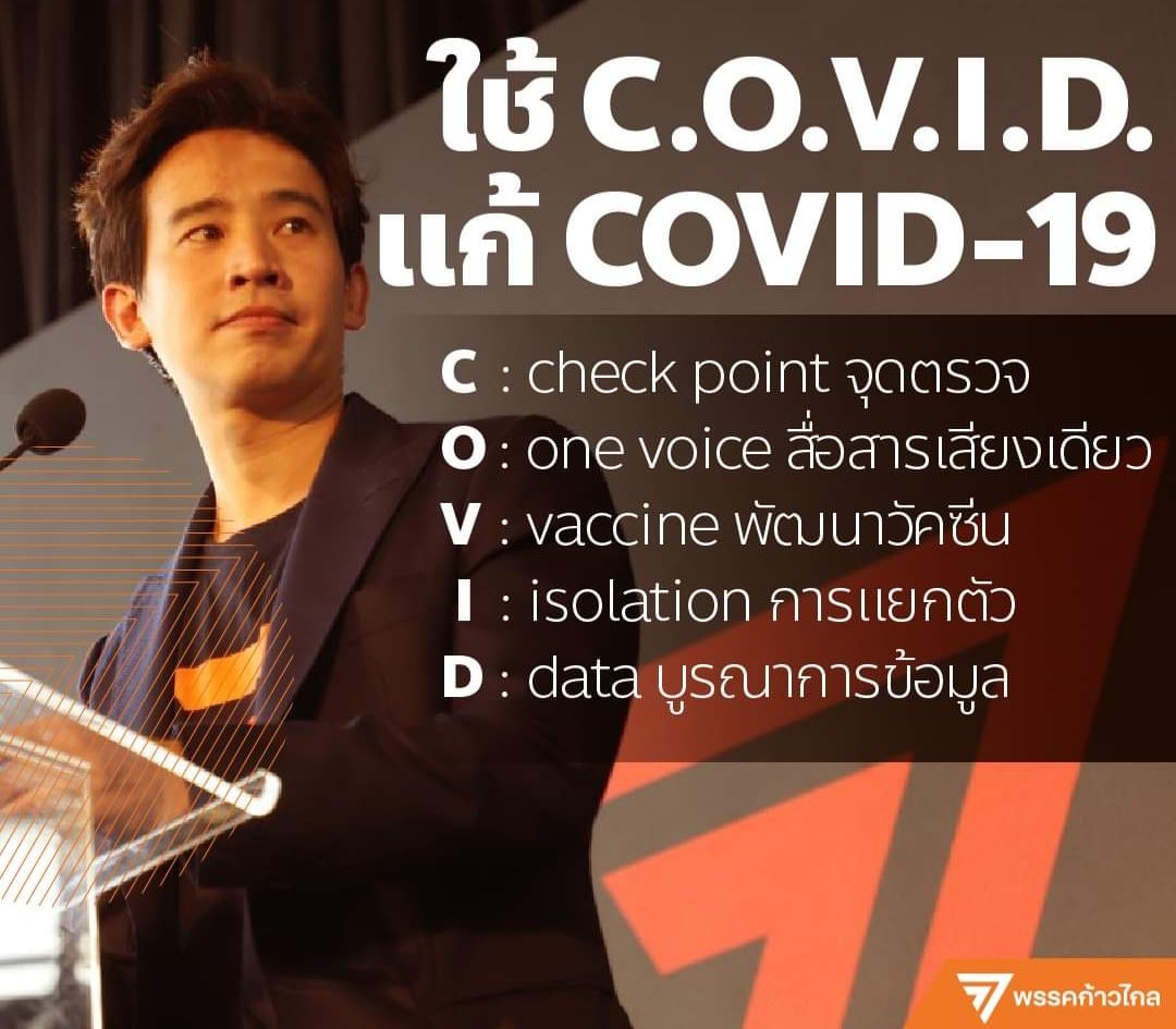 หัวหน้าพรรคก้าวไกลเชื่อโควิดเข้าสู่ระยะ3แนะรัฐบาลบริหารจัดการวิกฤติโดยใช้หลักการ 5 ข้อC-O-V-I-D มาแก้ไขปัญหา