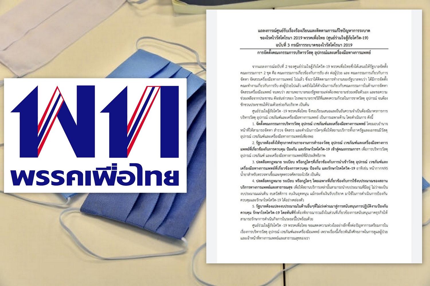 เพื่อไทยร่วมสู้โควิด-19 ตั้งคณะกก.บริหารเวชภัณฑ์ เครื่องมือแพทย์