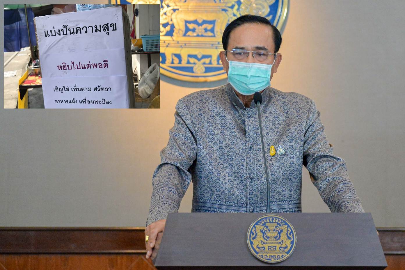 นายกฯชื่นชมประชาชนและภาคเอกชนร่วมตั้งตู้ปันสุขแบ่งปันสิ่งของ แต่รับไม่ได้คนมารุมแย่งของ แนะต้องมีจิตสำนึกเห็นใจคนอื่นด้วย