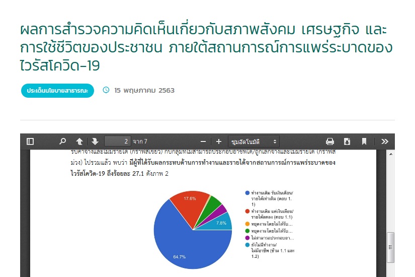 สถาบันพระปกเกล้าเผยผลสำรวจประชาชนต่อการทำงานของรัฐบาลในการแก้โควิด-19 เสียงส่วนใหญ่ ร้อยละ64.9พึงพอใจให้สอบผ่าน