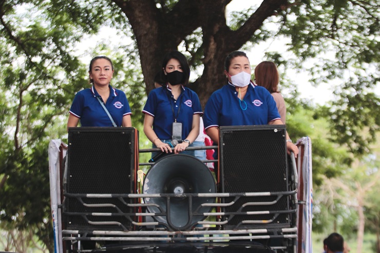 เมื่อวันที่ 19 มิ.ย.63 ที่บ้านเหล่า ต.ล้อมแรด อ.เถิน จ.ลำปาง น.ส.วทันยา วงษ์โอภาสี ส.ส.บัญชีรายชื่อ นางกรณิศ งามสุคนธ์รัตนา ส.ส.กทม.เขตคลองเตย-วัฒนา น.ส.จอมขวัญ กลับบ้านกาะ ส.ส.สมุทรสาคร พรรคพลังประชารัฐ ขึ้นรถแห่ช่วยนายวัฒนา สิทธิวัง ผู้สมัคร ส.ส.เขต 4 จ.ลำปางหาเสียงเลือกตั้ง ซึ่งจะมีขึ้นในวันเสาร์ที่ 20 มิ.ย.นี้