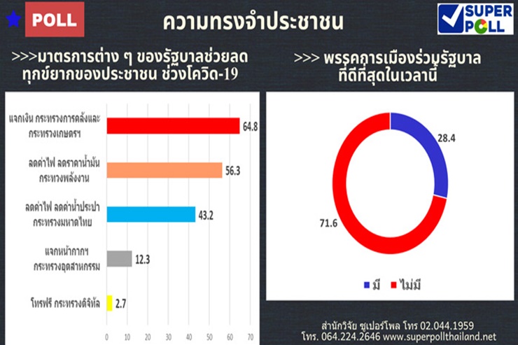 ซูเปอร์โพล เผย ประชาชนส่วนใหญ่ ได้รับผลกระทบ ช่วงโควิด จดจำมาตรการเยียวยา รัฐแจกเงิน ช่วยลดความเดือดร้อน