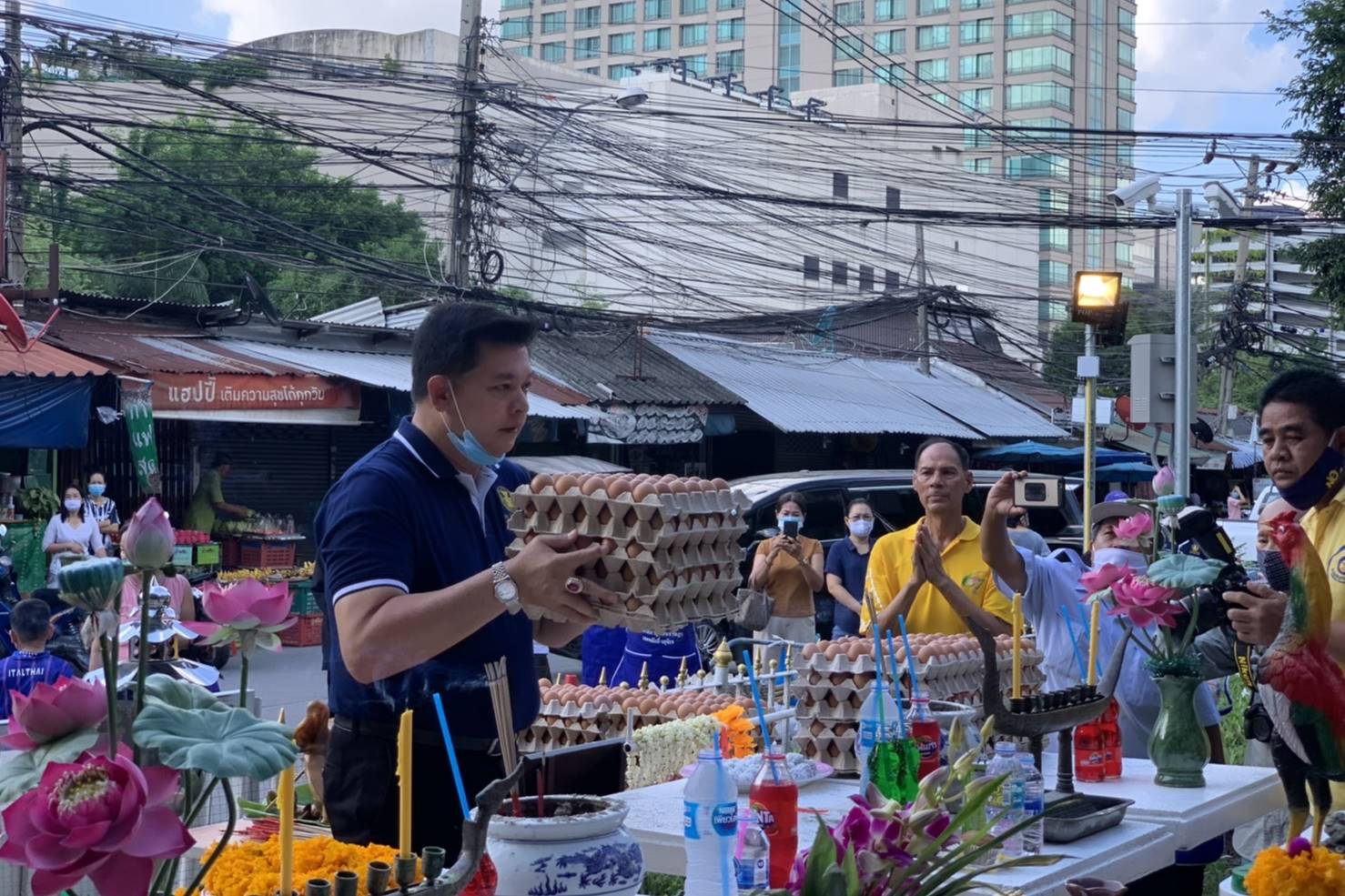 ทั้งนี้หลังจากทำพิธีเสร็จแล้ว นายสิระก็ได้แจกจ่ายไข่ไก่ทั้งหมดให้กับประชาชนที่มาไหว้ศาล