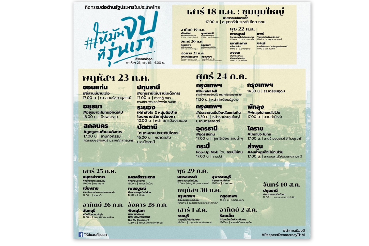 เปิดคิว"เยาวชนปลดแอก"ลุยจัดเวทีปราศรัยระดมม็อบไล่ลุงตู่ 26 จังหวัด เพจ"โดมปฏิวัติ"ม.ธรรมศาสตร์นัดชุมนุมไล่รัฐบาลเร็ววันนี้