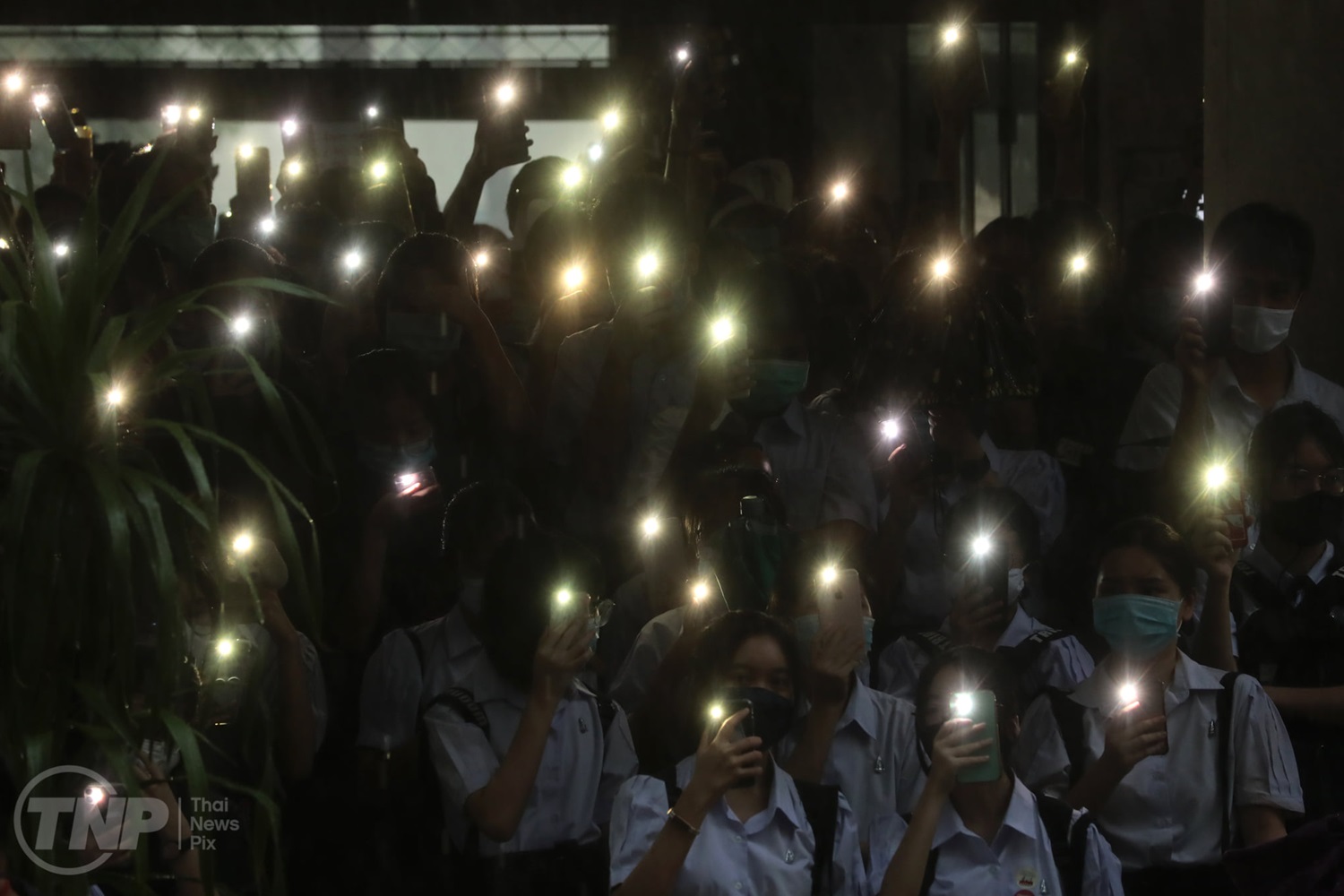 นักเรียนเตรียมอุดมศึกษาเปิดแฟลชมือถือไล่รัฐบาล