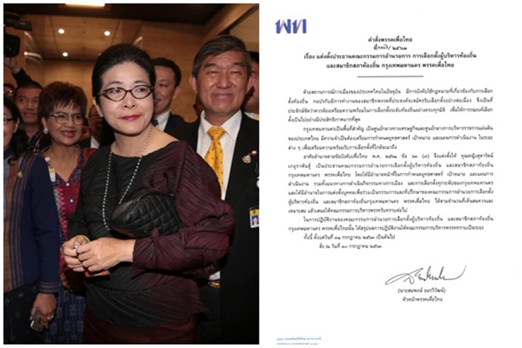 คำสั่งพรรคเพื่อไทย ตั้ง"คุณหญิงสุดารัตน์ " เป็น ประธานคณะกรรมการอำนวยการเลือกตั้งผู้บริหารท้องถิ่น สมาชิกสภาท้องถิ่น กทม.