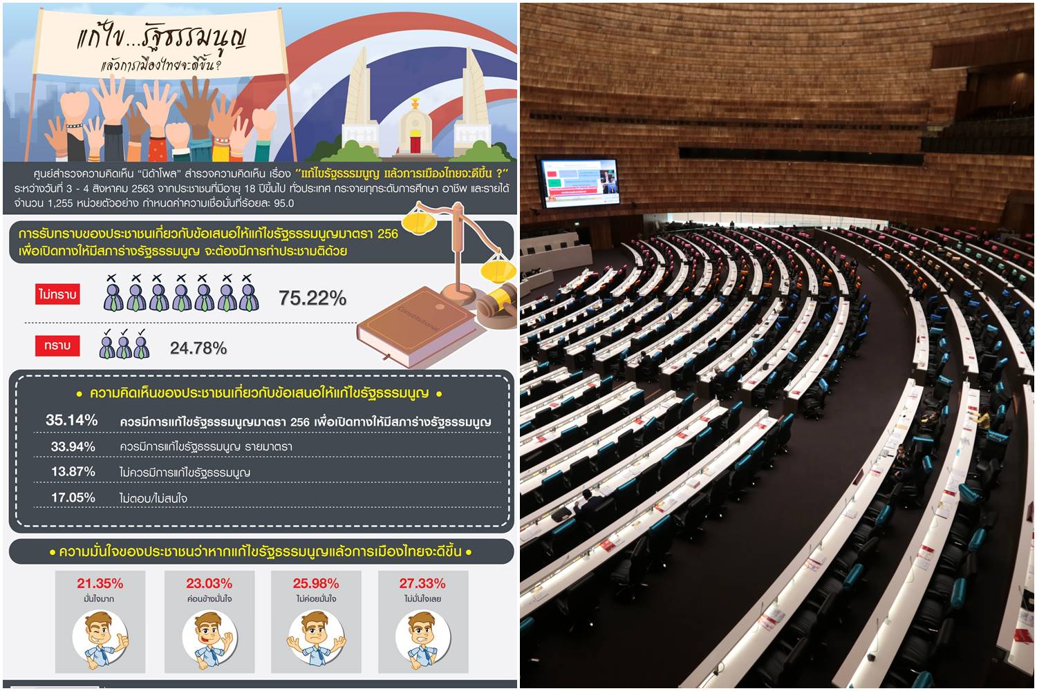 โพลสูสี!คนมั่นใจ-ไม่มั่นใจ หากแก้รธน.แล้วการเมืองไทยจะดีขึ้น