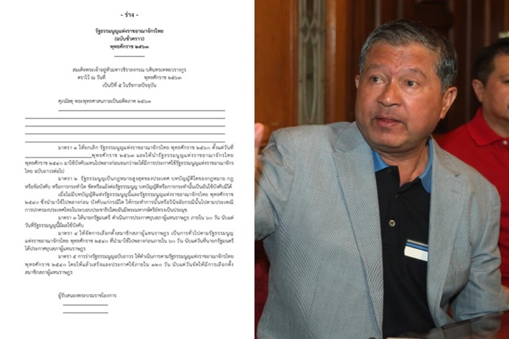 เฉลิม เสนอ ร่างรธน.ฉบับชั่วคราว 5 มาตรา ให้ยกเลิก รธน.ปี 60 ใช้รธน.ปี 40 แทน ให้ยุบสภา-เลือกตั้งใหม่ ก่อนร่างรธน.ฉบับถาวรให้แล้วเสร็จภายใน 120 วัน