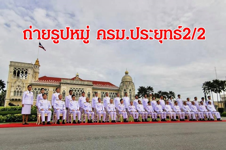 ทั้งนี้ ในเวลา 08.00 น. คณะรัฐมนตรี เริ่มทยอยมายังหน้าตึกไทยคู่ฟ้าทำเนียบรัฐบาล เพื่อถ่ายรูปหมู่ ก่อนเริ่มประชุมคณะรัฐมนตรี โดยภายหลังถ่ายรูปเสร็จ พล.อ.ประยุทธ์ ได้อวยพรขอให้ทุกคนโชคดี จากนั้น ครม.ก็เดินทางเข้าประชุมนัดแรกทันที