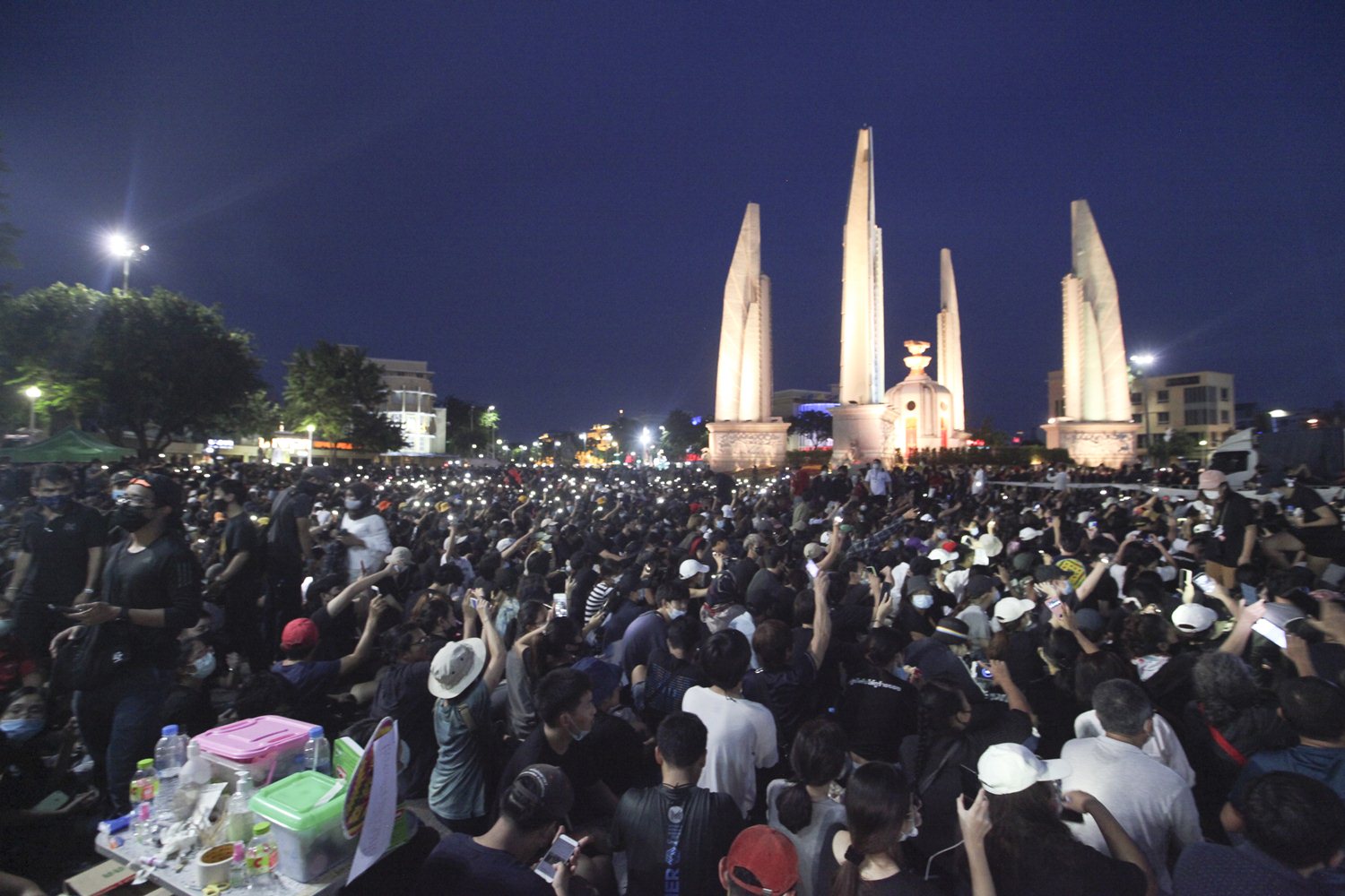 เมื่อวันที่ 16 ส.ค. 63 เวลา 19.00 น. บรรยากาศการชุมนุมใหญ่ของ "คณะประชาชนปลดแอก" ที่อนุสาวรีย์ประชาธิปไตย เป็นไปอย่างคึกคัก โดยมีประชาชนเดินทางมาร่วมชุมนุมจนแน่นในพื้นที่โดยรอบอนุสาวรีย์ประชาธิปไตย โดยท้ายแถวของผู้ชุมนุมอยู่บริเวณสี่แยกคอกวัว