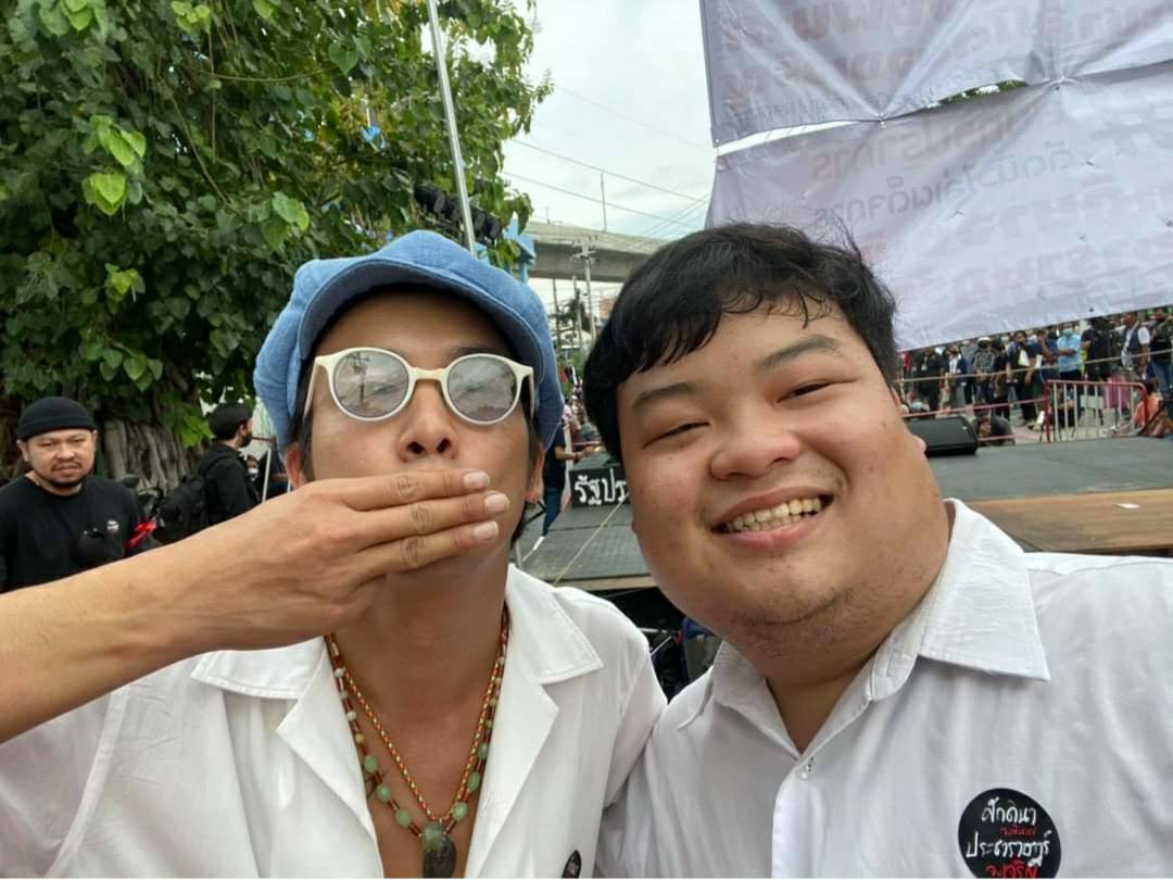 เมื่อวันที่ 30 ส.ค.นายพริษฐ์ ชิวารักษ์ หรือ เพนกวิน นักศึกษามหาวิทยาลัยธรรมศาสตร์ และแกนนำเยาวชนปลดแอก โพสต์เฟซบุ๊กถ่ายภาพคู่กับนายไชยอมร แก้ววิบูลย์พันธุ์ หรือ แอมมี่ เดอะบอตทอมบลูส์ นักร้อง นักแต่งเพลง สมาชิกวงดนตรีเดอะบอตทอมบลูส์ บริเวณเวทีที่หอชมเมือง จ.สมุทรปราการ พร้อมระบุข้อความ "ดูสิเจอใครที่สมุทรปราการ เหมือนเราจะเพิ่งเจอกันไม่กี่วันนี้นะครับ"