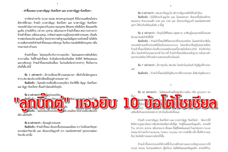 ลูกสาวฝาแฝด นายกฯ แจงยิบ 10 ข้อ ไม่ยุ่งเกี่ยวงานพ่อ - ไม่เคยแสดงความคิดเห็นทางการเมือง