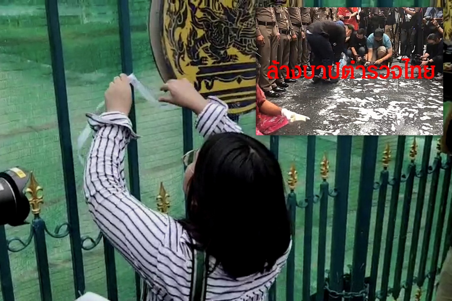 ขณะเดียวกันระหว่าง ผู้ชุมนุมได้นำน้ำยาเช็ดกระจกมาฉีดป้ายตร. ทำให้เกิดชุลมุนเล็กน้อย และผู้ชุมนุมขอให้ตำรวจปฏิญาณตนที่ปฏิญาณทุกวัน และระบุอีกว่าหากในเวลา 18.00 น. ไม่สามารถเช็ดป้าย ตร. จะกลับมาอีกครั้ง เพื่อทวงความยุติธรรม และคนจะจำนวนเยอะกว่าเดิม พร้อมตะโกนว่า "เราจะไม่หยุดจนกว่าอำนาจมืดจะหมดไป"