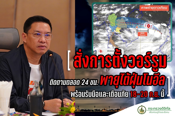 รมว.ดีอีเอส เตือนภัย พายุไต้ฝุ่น "โนอึล" เข้าไทย 18-20 ก.ย.นี้ สั่งตั้งวอร์รูมติดตาม และรายงานผลกระทบตลอด 24 ชั่วโมงทันที