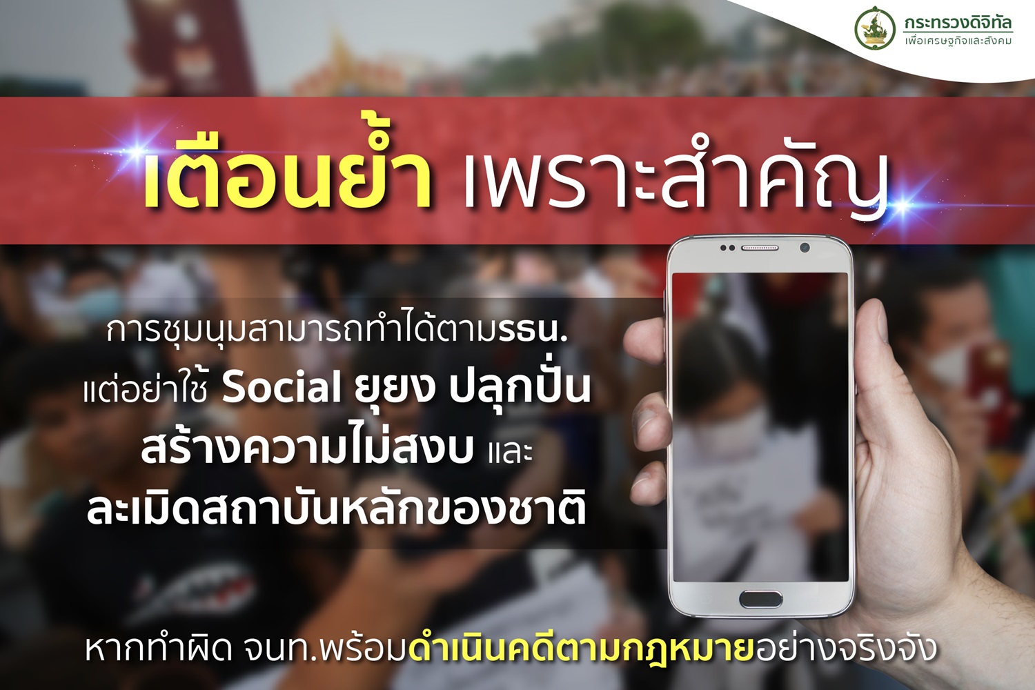 ที่สำคัญ ต้องไม่ละเมิดสถาบันหลักของประเทศ เพราะการ กระทำดังกล่าว จะเป็นความผิดตามพระราชบัญญัติว่าด้วยการกระทำผิดเกี่ยวกับคอมพิวเตอร์ ซึ่งกระทรวงดิจิทัลฯ จะติดตามและเก็บรวบรวมพยานหลักฐาน หากมีการกระทำความผิด เจ้าหน้าที่จำเป็นต้องดำเนินการในทางคดีอย่างจริงจัง