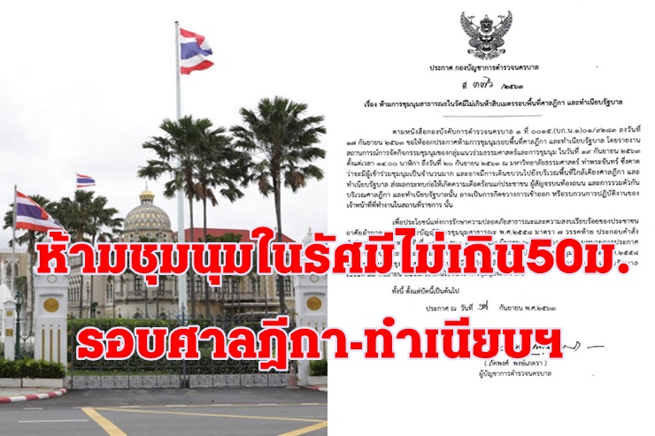 สั่งห้ามชุมนุมในรัศมีไม่เกิน 50 เมตร รอบ ศาลฎีกา-ทำเนียบรัฐบาล