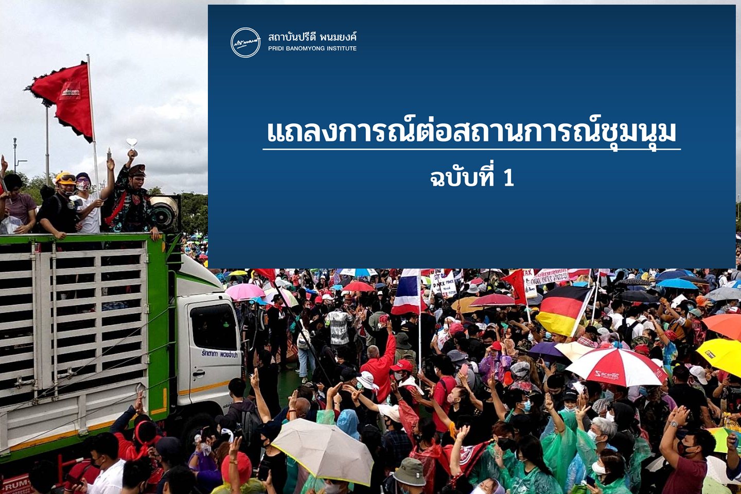 เมื่อวันที่ 19 ก.ย. 63 สถาบันปรีดี พนมยงค์ ได้ ออกแถลงการณ์ต่อสถานการณ์ชุมนุม ฉบับที่ 1 มีเนื้อหาดังนี้