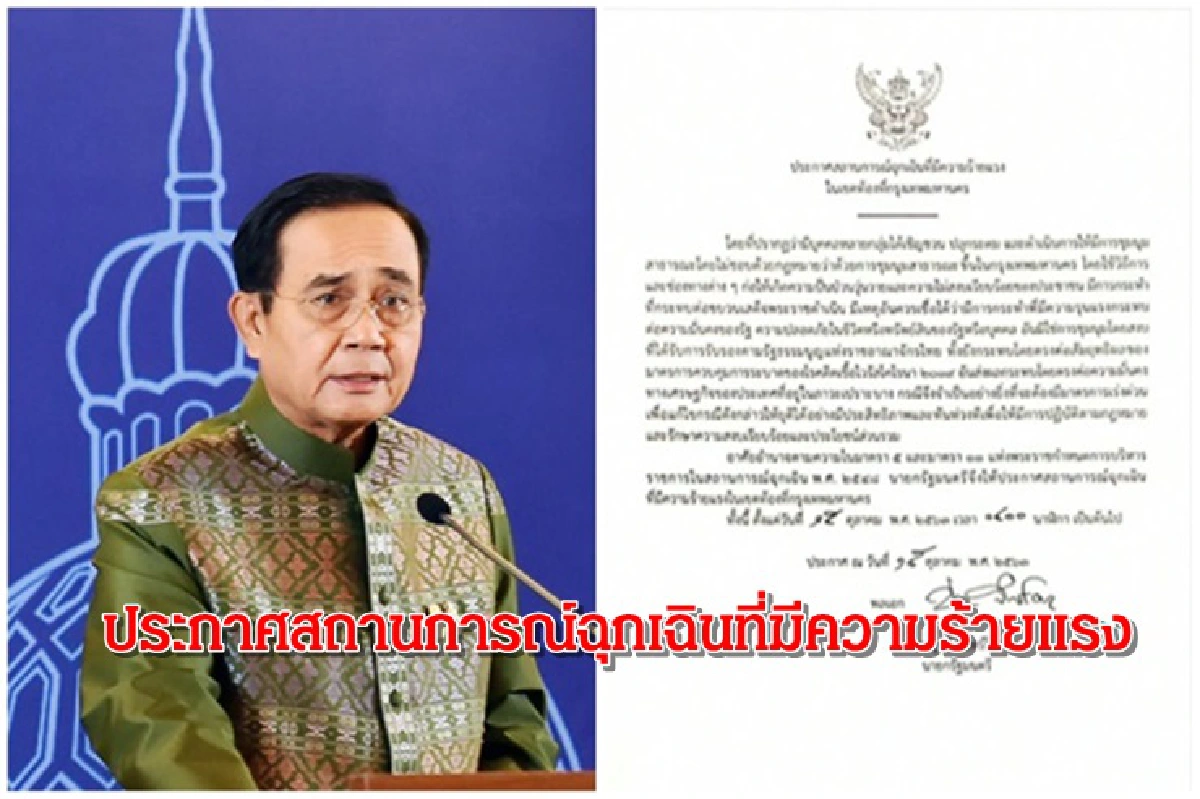 นายกฯ ประกาศสถานการณ์ฉุกเฉินที่มีความร้ายแรงในเขตท้องที่กรุงเทพมหานคร เหตุม็อบปลุกระดม ก่อความวุ่นวาย กระทบขบวนเสด็จฯ มีผลตั้งแต่ 04.00 น.