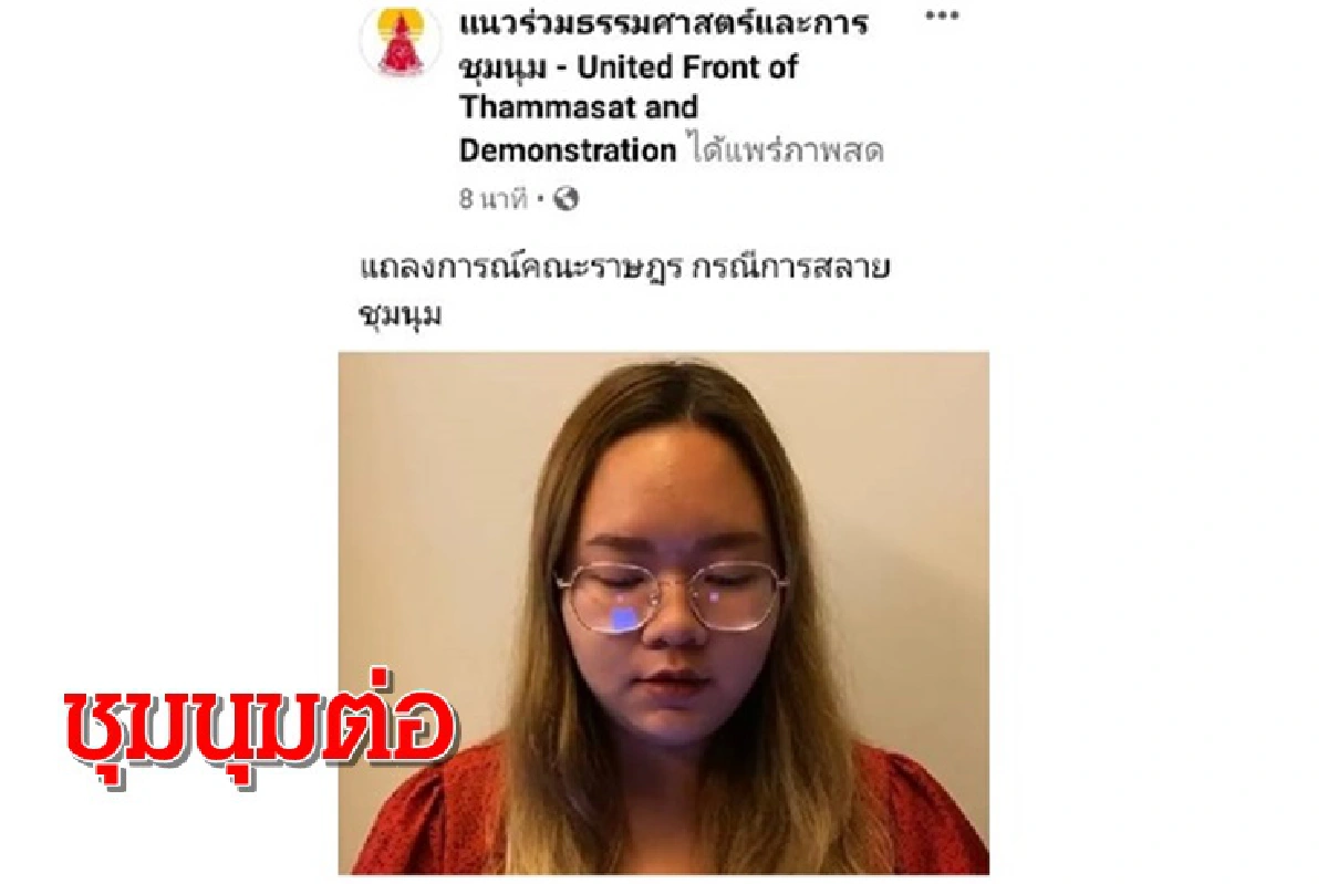 เราขอแสดงจุดยืนโดยจัดการชุมนุมต่อไป ในวันที่ 15 ต.ค.63 เวลา 16.00 น. ณ แยกราชประสงค์ เราขอเชิญพ่อแม่พี่น้องที่รักในประชาธิปไตย จงออกมา เพื่อร่วมเปลี่ยนแปลงกับเรา เพื่อโค่นล้มอานาจเผด็จการและพวกศักดินาสามานย์