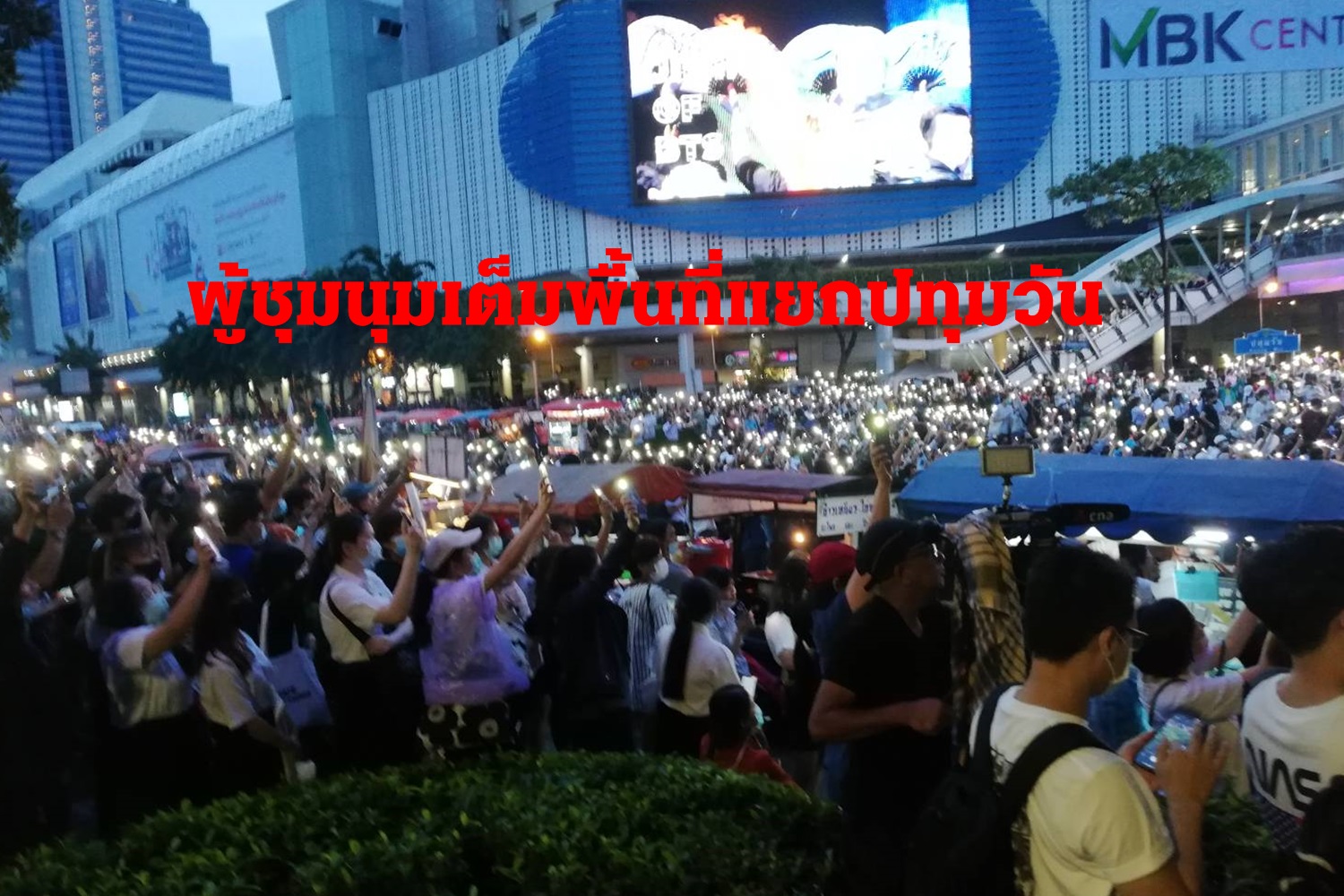 1ชั่วโมงผ่าน...ประมวลภาพม็อบชุมนุมแยกปทุมวัน