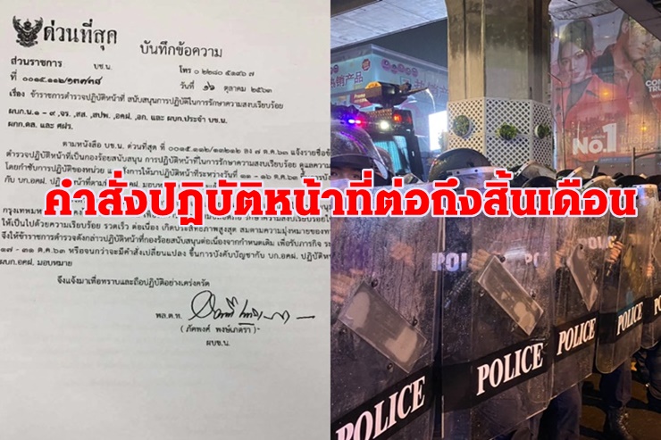 ผู้บัญชาการตำรวจนครบาล มีคำสั่งด่วน ให้ตำรวจควบคุมฝูงชน อยู่ปฏิบัติหน้าที่ถึง 31 ต.ค.