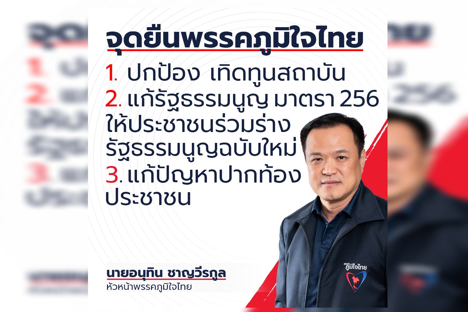 ภูมิใจไทยประกาศ3จุดยืน ปกป้องสถาบัน-แก้รธน.-แก้ปัญหาปากท้อง