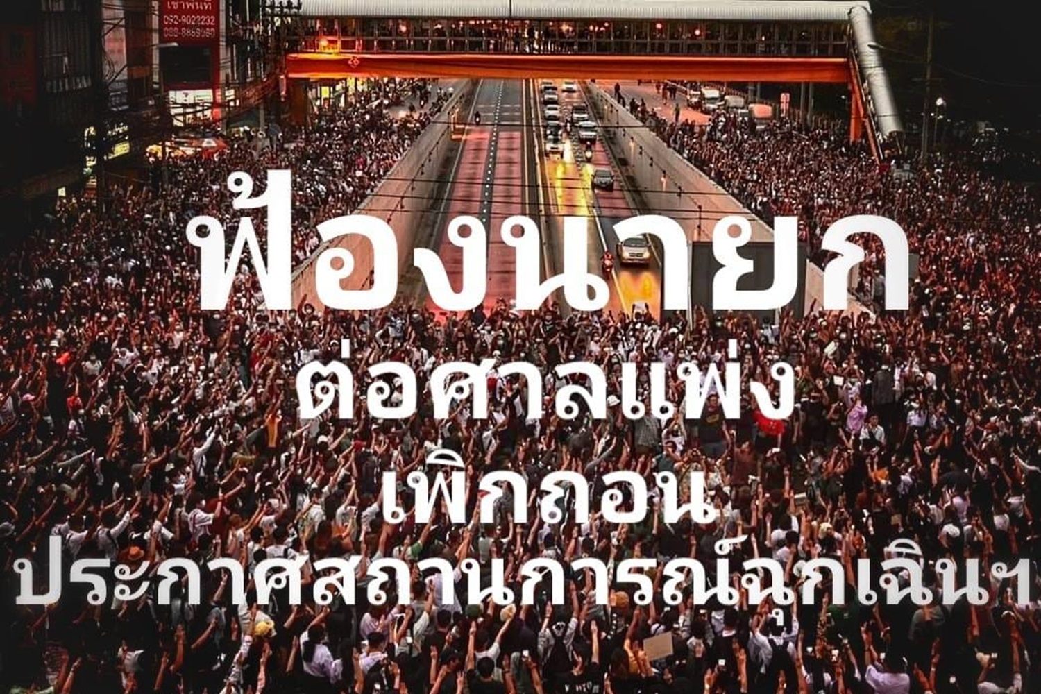 คุณหญิงสุดารัตน์ เกยุราพันธุ์ อดีตประธานคณะกรรมการยุทธศาสตร์พรรคเพื่อไทย โพสต์ข้อความผ่านเฟซบุ๊ก คุณหญิงสุดารัตน์ เกยุราพันธุ์ Sudarat Keyuraphan ว่า ได้ติดตามสถานการณ์ชุมนุมด้วยความห่วงใย ได้หารือ และเห็นช่องทางว่าเราน่าจะใช้สิทธิ์ทางศาล เพื่อหยุดยั้งการใช้อำนาจรัฐในการทำร้ายผู้ชุมนุมจึงได้ร่างคำร้องต่อศาลแพ่ง เพื่อขอให้ศาลมีคำพิพากษาหรือคำสั่งให้ถอนประกาศสถานการณ์ฉุกเฉินที่มีความร้ายแรงในพื้นที่กรุงเทพมหานคร