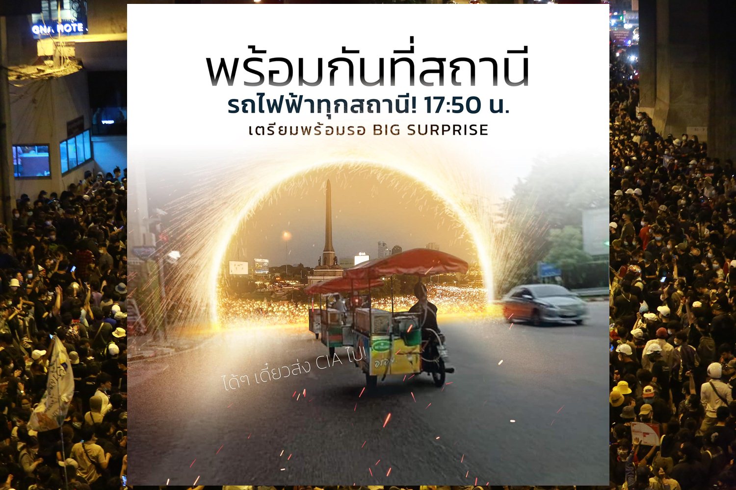 ม็อบนัดรวมตัวสถานีรถไฟฟ้าทุกแห่ง 17.50น. เผยมี "BIG SURPRISE"