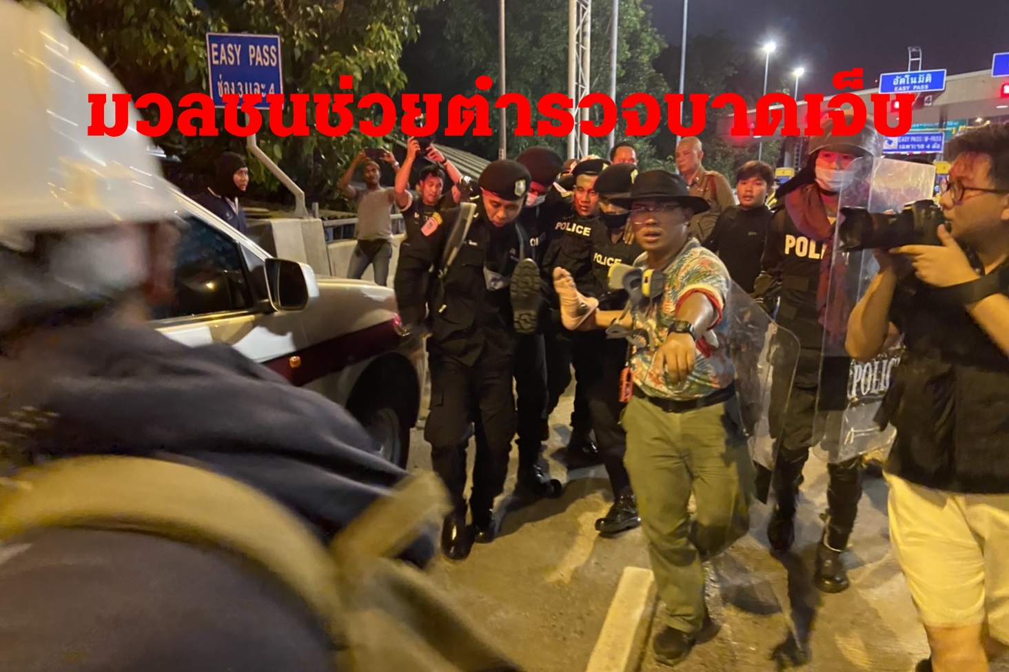 มวลชนช่วยปฐมพยาบาลตำรวจเกิดอุบัติเหตุผลักดันที่แยกอุรุพงษ์