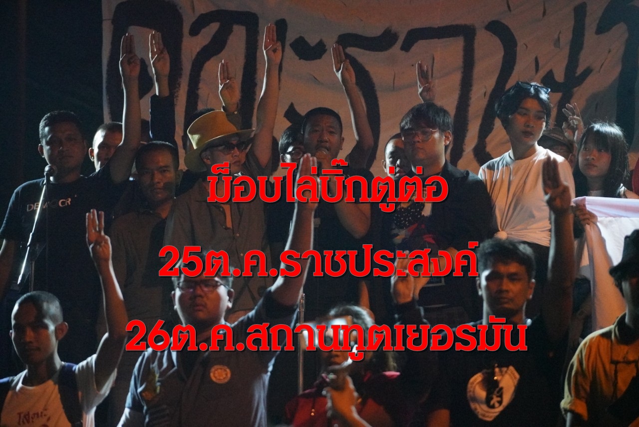 ม็อบราษฎรประกาศยึดราชประสงค์ไล่บิ๊กตู่อีกยก25ต.ค.หลังครบเส้นตาย3วันไม่ลาออกพร้อมทัวร์สถานทูตเยอรมัน26ต.ค.