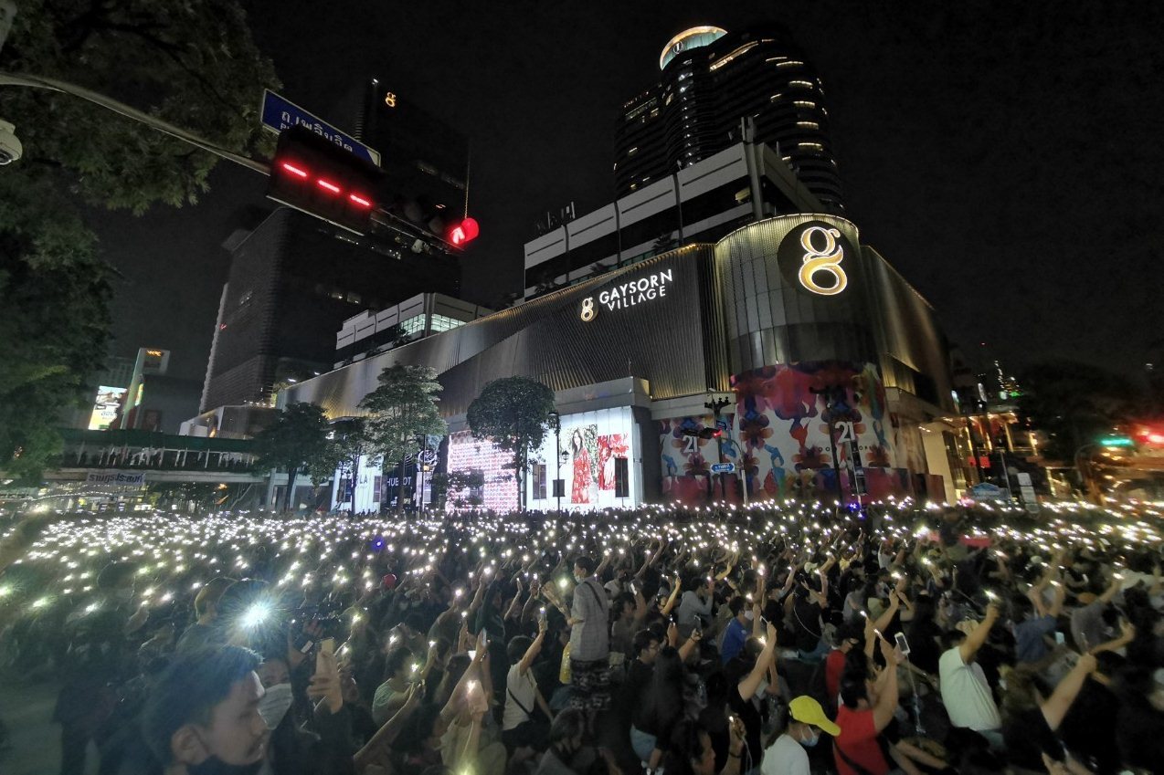 ม็อบราชประสงค์ยุติชุมนุมแล้ว มวลชนร่วมเปิดไฟไล่ประยุทธ์
