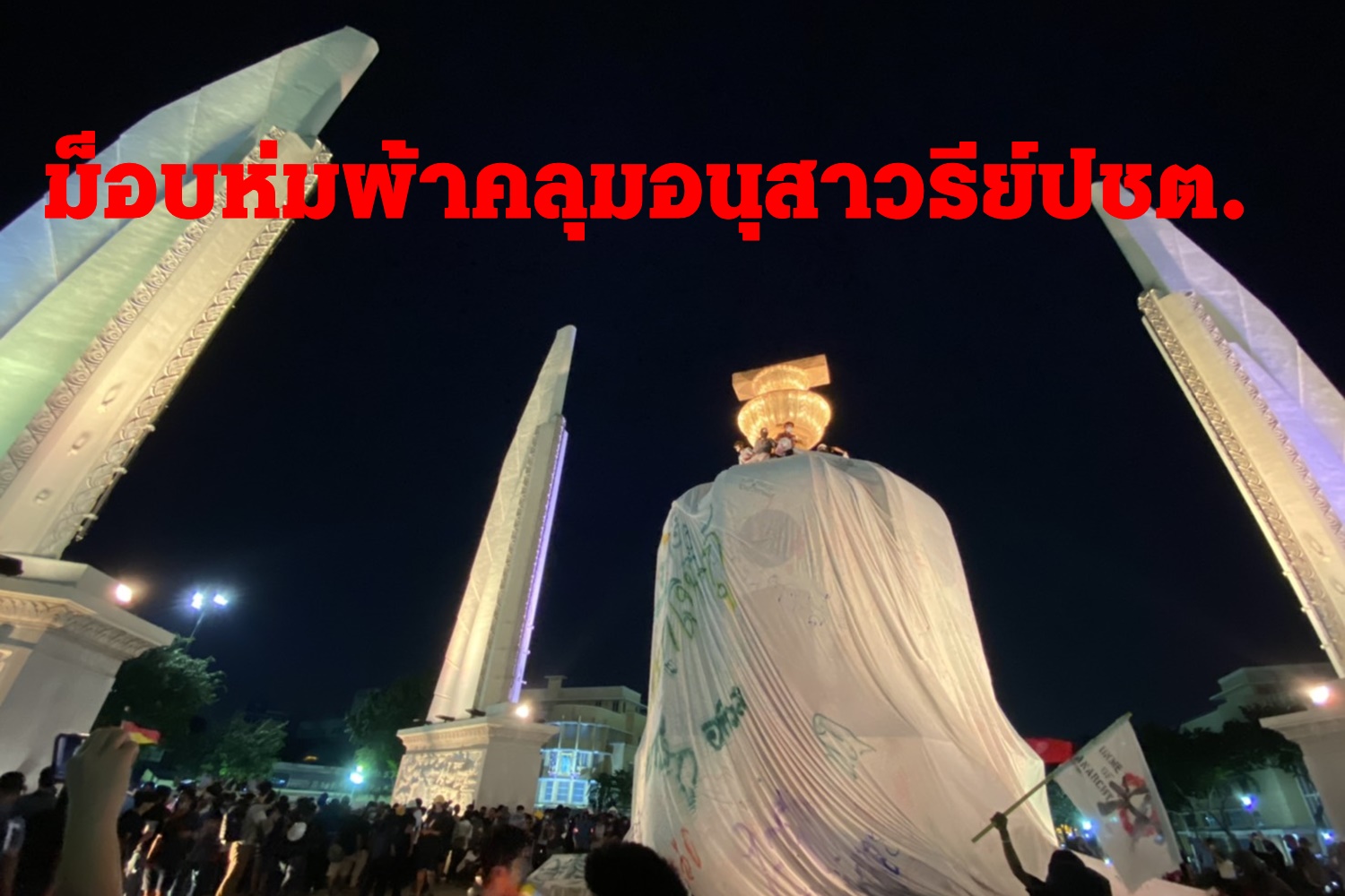 ม็อบปฎิบัติการห่มผ้าขาวคลุมอนุสาวรีย์ปชต.จี้3ข้อเรียกร้อง