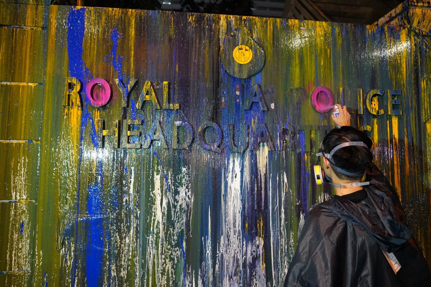 ชมภาพชุดสภาพหน้าสำนักงานตำรวจแห่งชาติที่เต็มไปด้วยสี หลังจากม็อบราษฎรจัดกิจกรรมสาดสีใส่
