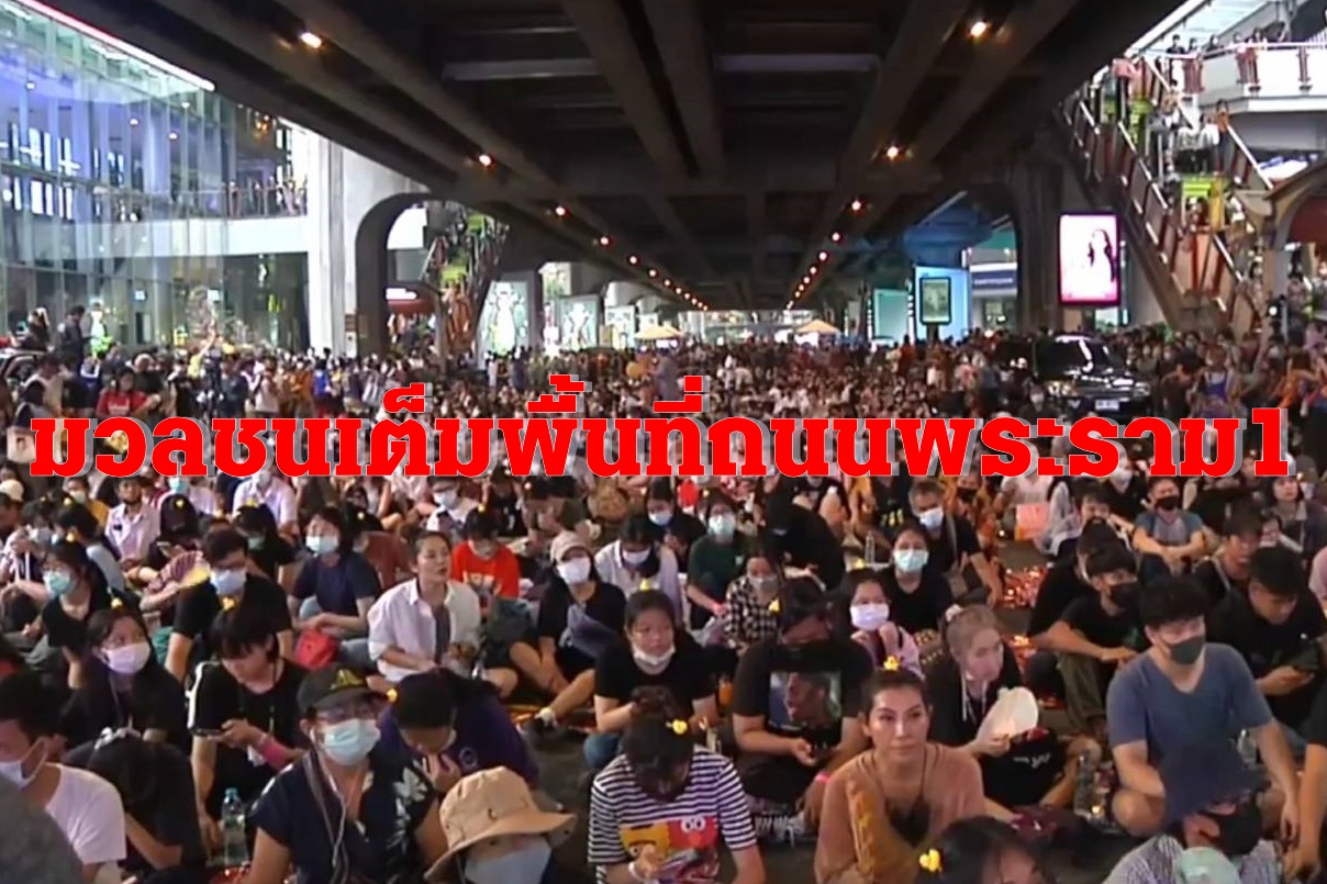 เปิดภาพบรรยากาศ ล่าสุด ถนนพระราม 1 ใต้สถานีรถไฟฟ้าบีทีเอส สยาม กลุ่มมวลชนนั่งเต็มถนนพระราม 1 รอตั้งเวทีใหญ่ของกลุ่มนักเรียนเลวและเครือข่าย42กลุ่มที่รวมตัวกันนัดทำกิจกรรมทางการเมือง ซึ่งจะดำเนินเรื่อยไปจนถึงเวลา 21.00น.