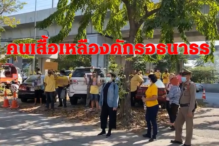 ด่วน! กลุ่มคนเสื้อเหลืองรวมตัวกันสน.ทุ่งสองห้อง ถือป้าย-เปิดเพลงหนักแผ่นดิน รอธนาธรเดินทางไปรับทราบข้อหาคดีถือหุ้นสื่อ