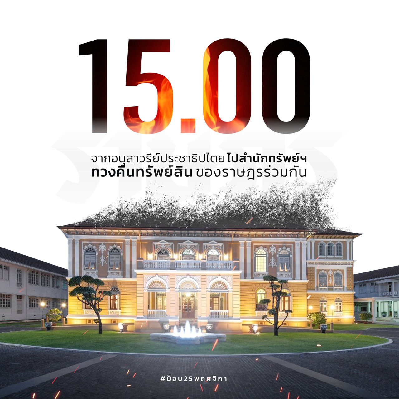 25 พฤศจิกายนนี้! เวลา 15.00 น. พร้อมกันที่อนุสาวรีย์ประชาธิปไตย! ก่อนไปสำนักทรัพย์ฯ ทวงคืนทรัพย์สินที่ควรจะเป็นของราษฎรทุกคน #25พฤศจิกาไปสำนักทรัพย์ #ม็อบ25พฤศจิกา