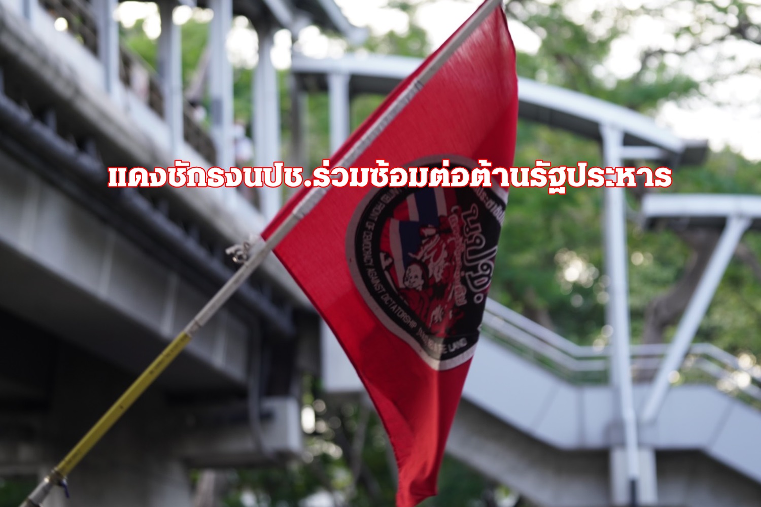 ซ้อมต้านรัฐประหารคึก! เสื้อแดงชักธงนปช.ร่วมม็อบราษฎร