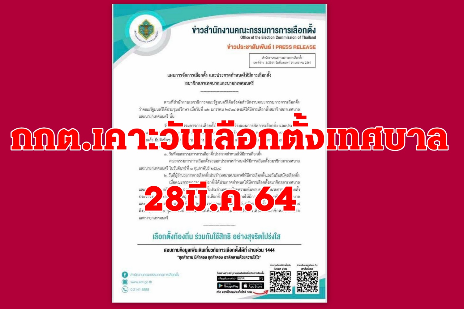 กกต.เคาะวันเลือกตั้งเทศบาลทั่วประเทศ 28มี.ค.64