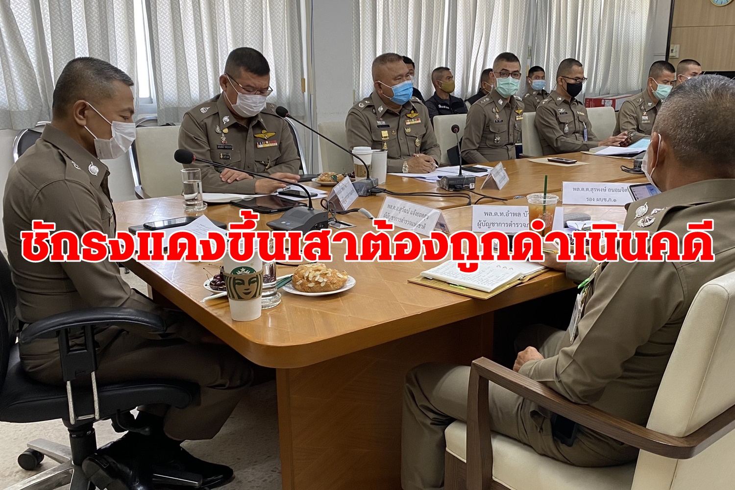 ปทุมธานี-ผบ.ตร.ประชุมด่วนปมผู้ชุมนุมชักผ้าแดง112ขึ้นเสาแทนธงชาติ เตรียมออกหมายเรียกแกนนำและสั่งให้ดำเนินคดีกับทุกคน