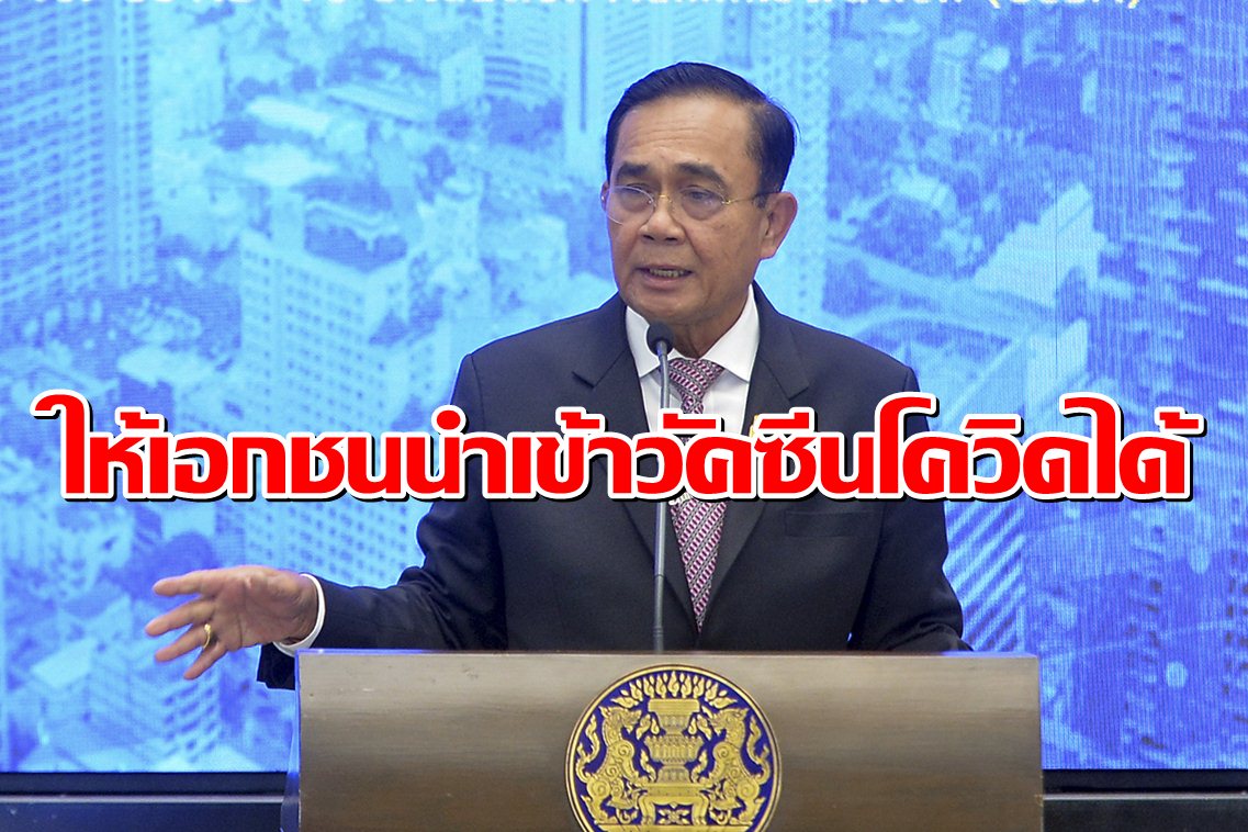 นายกฯยืนยันไม่ปิดกั้นภาคเอกชนนำเข้าวัคซีนป้องกันโควิด-19 แต่ขอให้ขึ้นทะเบียนกับ อย. เพื่อมั่นใจว่าปลอดภัย