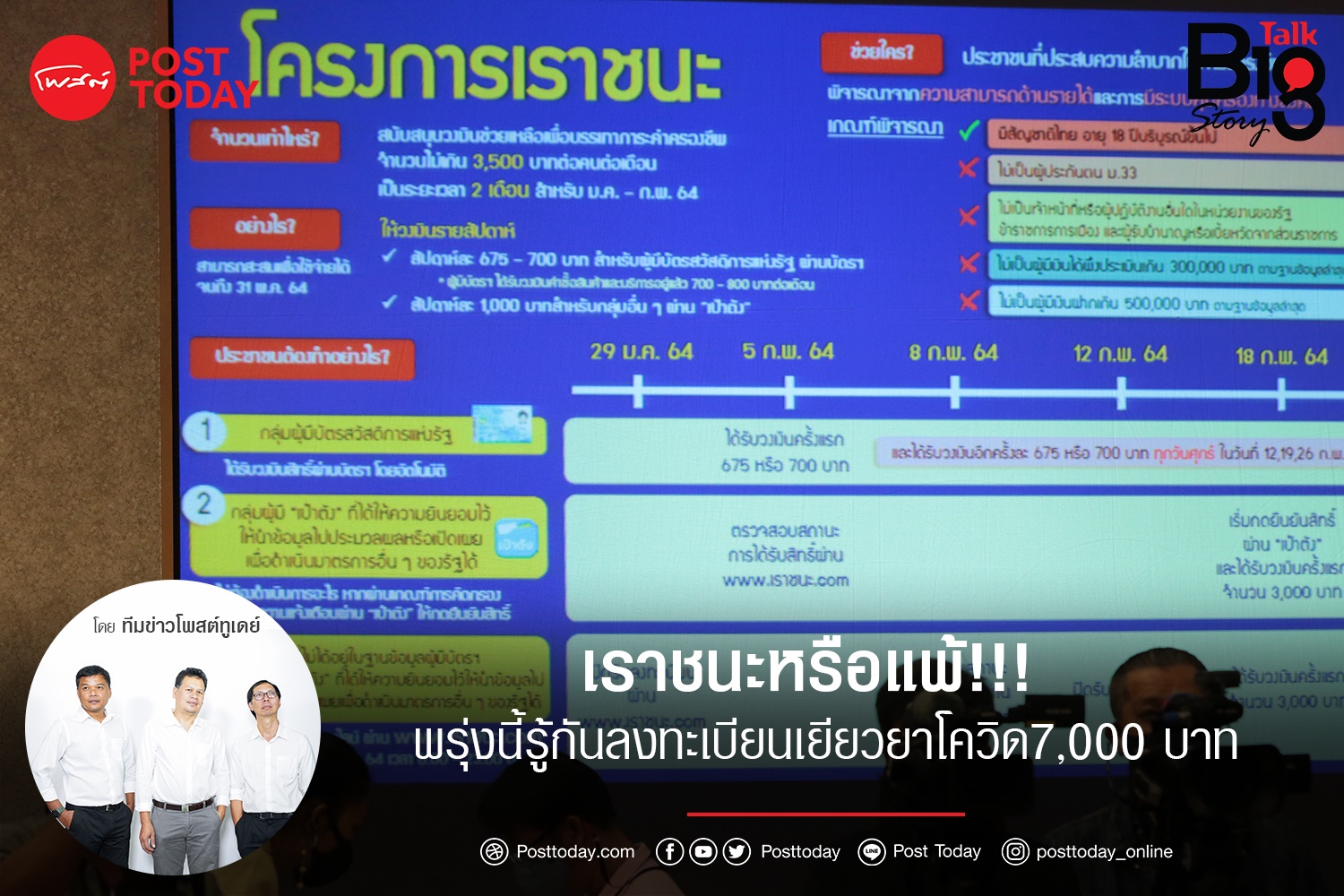 เราชนะหรือแพ้!!!พรุ่งนี้รู้กันลงทะเบียนเยียวยาโควิด7,000 บาท