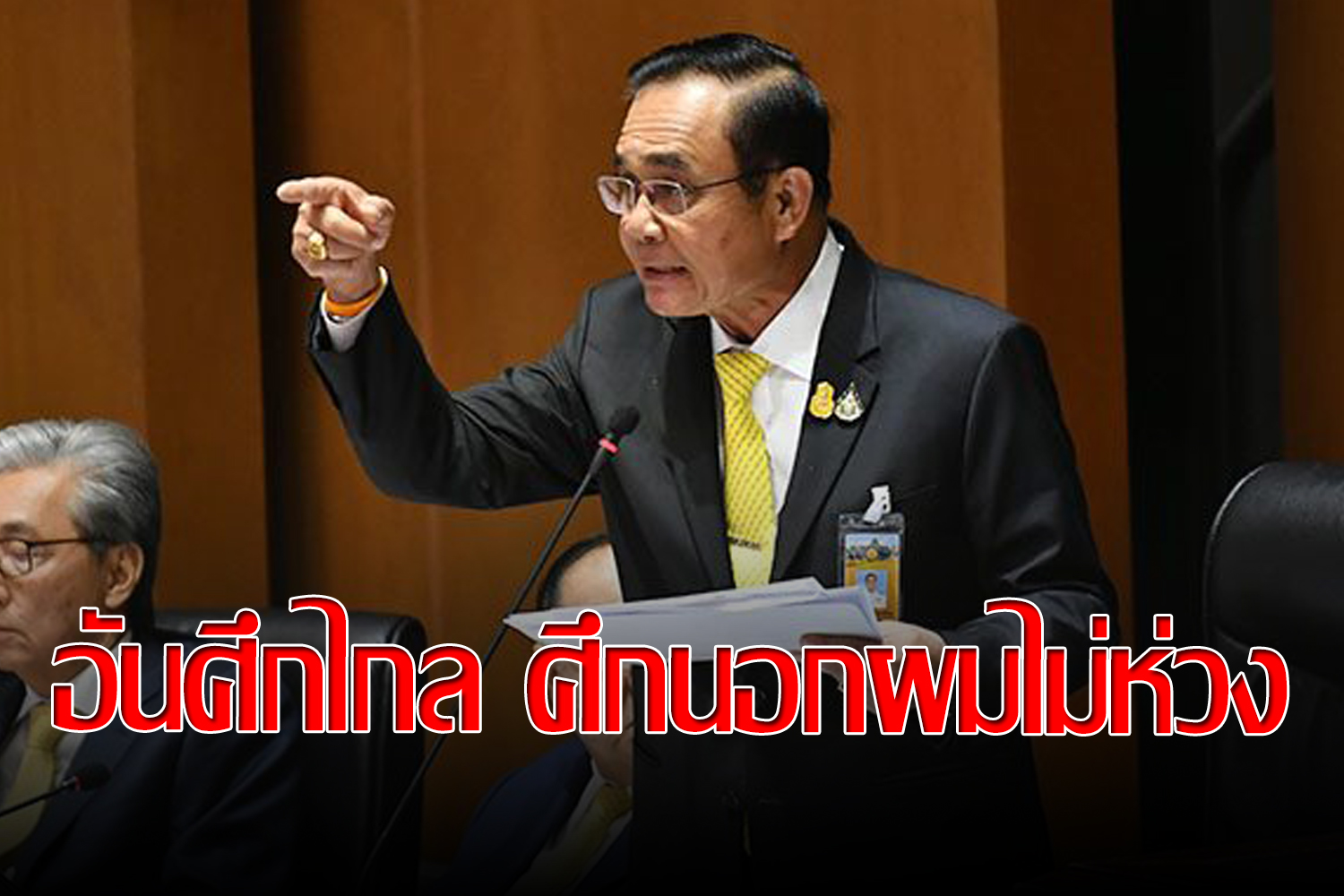“ท่านไม่ชอบผมไม่เป็นไร แต่ท่านไม่ชอบประเทศของท่านไม่ควร เพราะประชาชนก็คือประชาชนของเราที่ต่างฝ่ายก็รักกันทั้งคู่ คำว่ารักประชาชนต้องไม่เลือกว่าใครเป็นใคร กฎหมายเป็นผู้ดำเนินการอยู่แล้ว ให้ทุกคนอยู่อย่างเป็นปกติในประเทศ ไม่ว่าจะเป็นประชาธิปไตยแบบใดก็ตามต้องมีกฎหมายนั่นแหละที่จะทำให้สังคมสงบเรียบร้อย อันศึกนอกศึกไกล ผมไม่ห่วง แต่หวั่นทรวงศึกใกล้ไล่ข่มเหง หากคนไทยหันมาฆ่ากันเอง เราจะร้องเพลงชาติไทยให้ใครฟัง”พล.อ.ประยุทธ์ กล่าว
