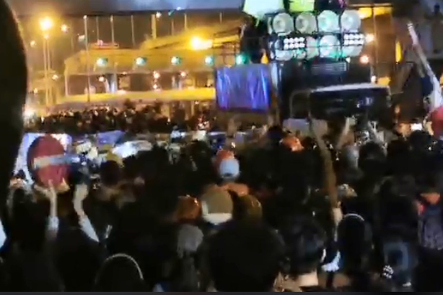 ขณะที่กลุ่มผู้ชุมนุมได้ประจันหน้ากับแนวกั้นเจ้าหน้าที่ และพยายามเจรจาเพื่อผ่านเข้าไป โดยผู้ชุมนุมต่างตะโกนบอกผู้ชุมนุมด้วยกันให้ใจเย็นๆ ไม่ขว้างปาสิ่งของ และดันเข้ามาหาแนวกั้น