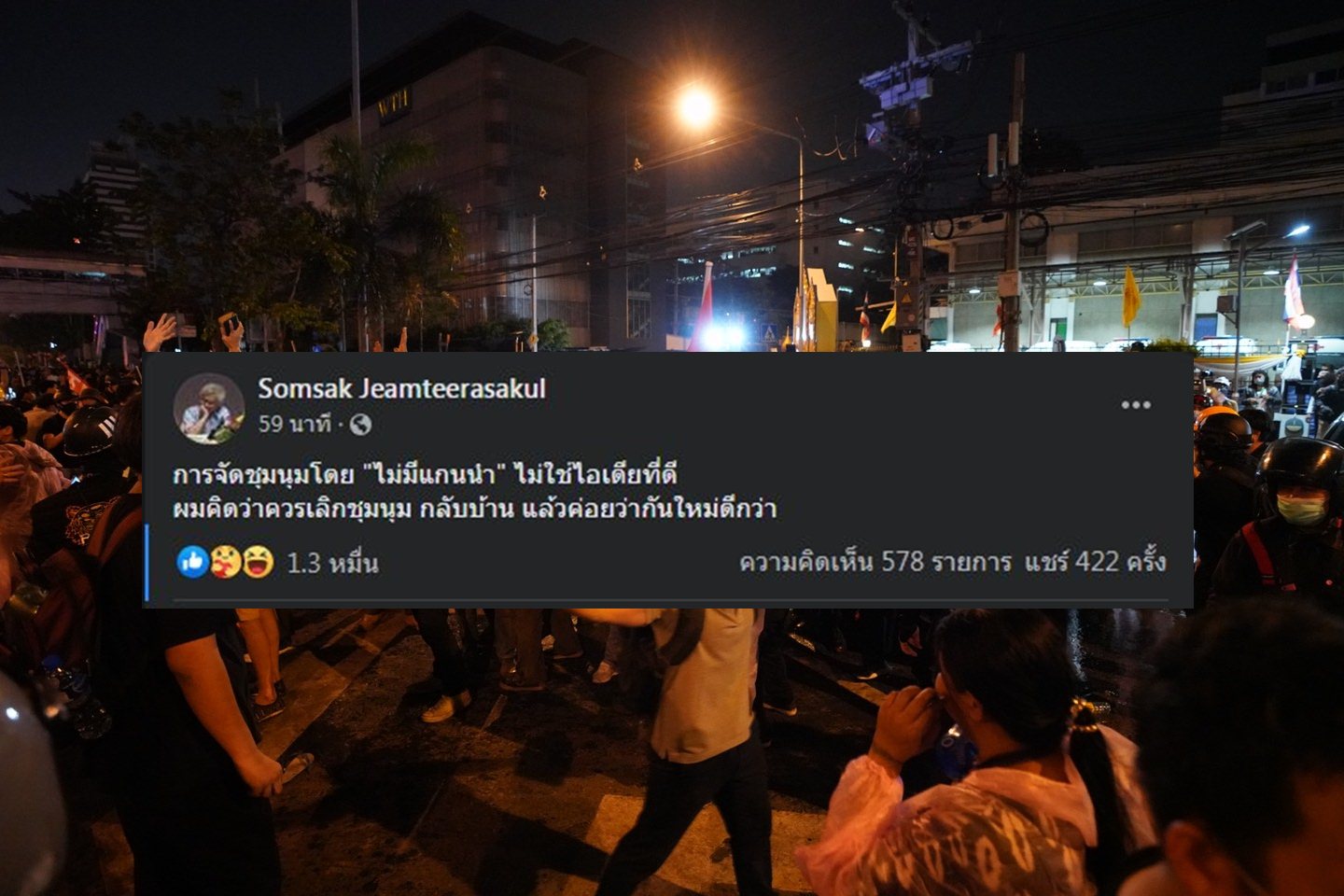 "สมศักดิ์ เจียมธีรสกุล" ชี้ม็อบไร้แกนนำไม่ใช่ไอเดียที่ดี แนะควรเลิกชุมนุม กลับบ้านแล้วค่อยว่ากันใหม่