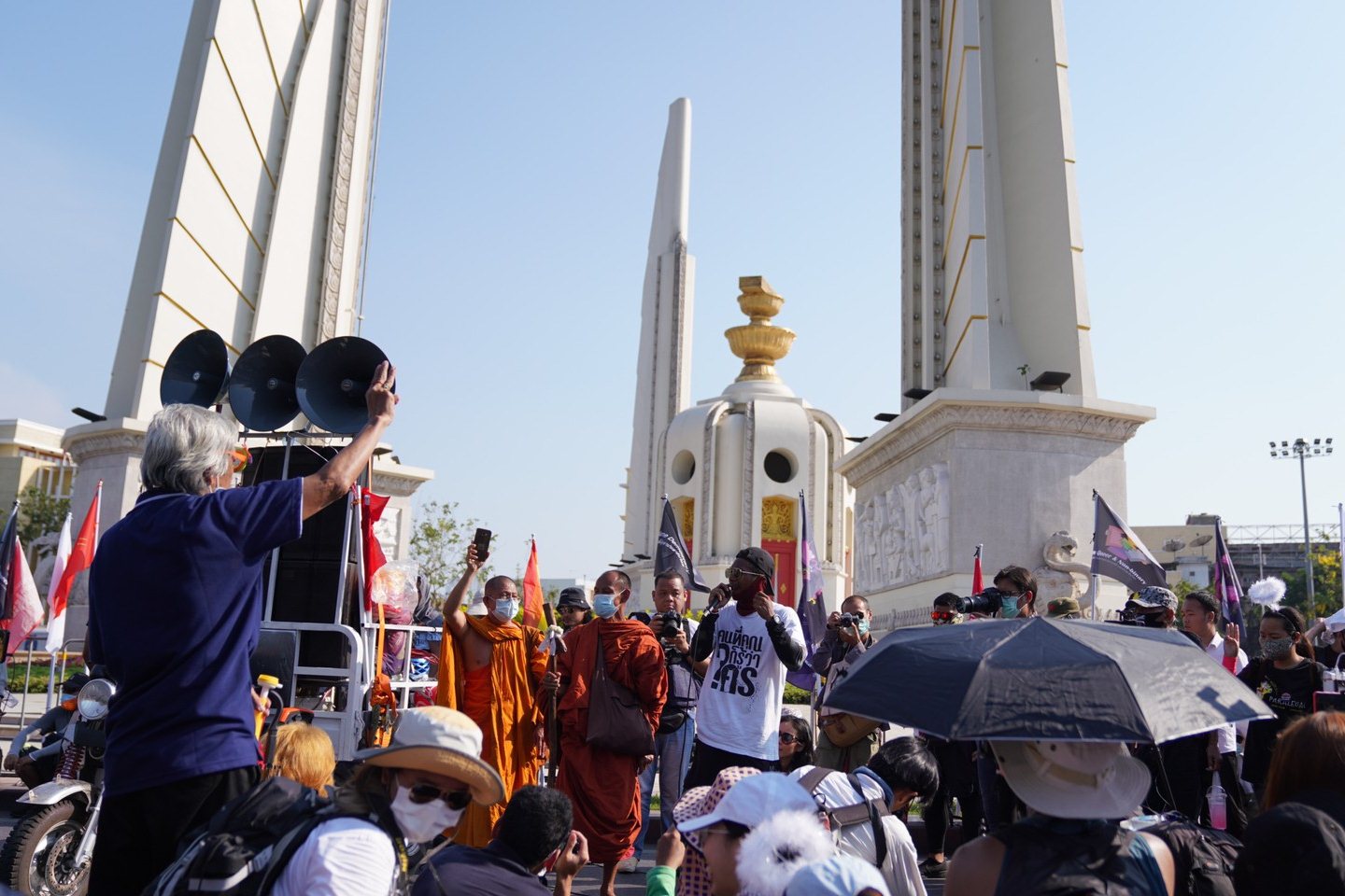 เมื่อวันที่ 7 มี.ค.64 แนวร่วมกลุ่มราษฎรนำโดย นายจตุภัทร์ บุญภัทรรักษา หรือ ไผ่ ดาวดิน ซึ่งจัดกิจกรรม เดินทะลุฟ้า จากนครราชสีมา สู่อนุสาวรีย์ประชาธิปไตย ได้เดินทางมาถึงอนุสาวรีย์ประชาธิปไตยแล้ว โดยมีมวลชนมาร่วมสมทบจำนวนหนึ่ง
