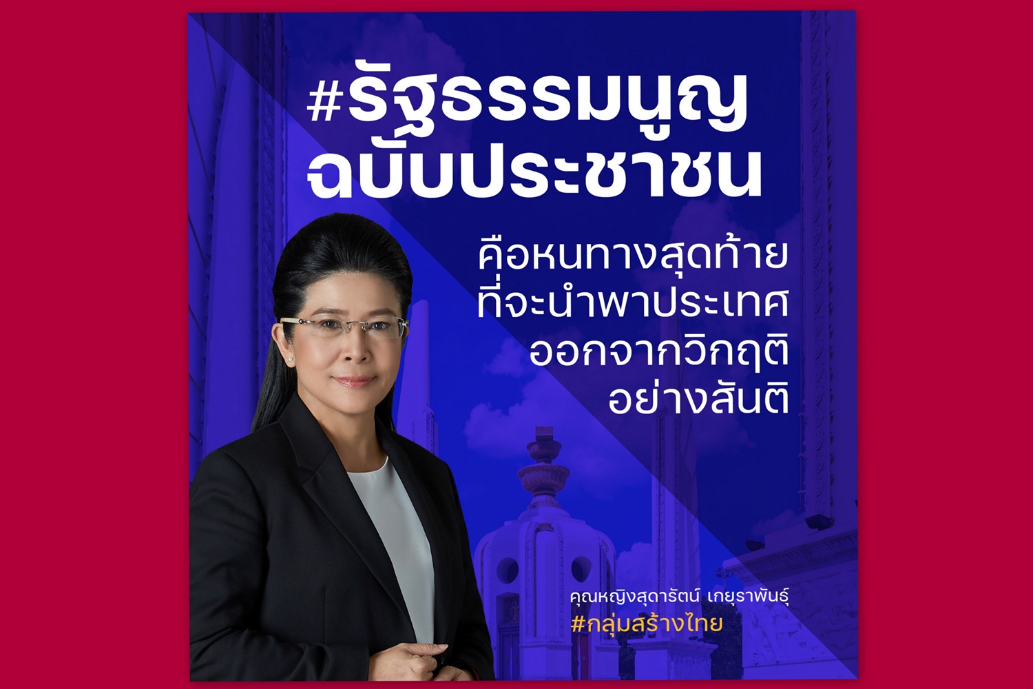 คุณหญิงสุดารัตน์ เกยุราพันธุ์ กลุ่มสร้างไทย โพสต์ข้อความผ่านเฟซบุ๊กว่า ตามที่ศาลรัฐธรรมนูญได้มีคำวินิจฉัยเรื่องพิจารณาที่ ๔/๒๕๖๔ สรุปว่าหากรัฐสภาจะจัดทำรัฐธรรมนูญฉบับใหม่จะต้องให้ประชาชนผู้มีอำนาจสถาปนารัฐธรรมนูญได้ลงมติเสียก่อน และเมื่อทำร่างรัฐธรรมนูญฉบับใหม่เสร็จแล้วต้องให้ประชาชนลงมติเห็นชอบหรือไม่กับร่างรัฐธรรมนูญฉบับใหม่อีกครั้งหนึ่ง นั้น