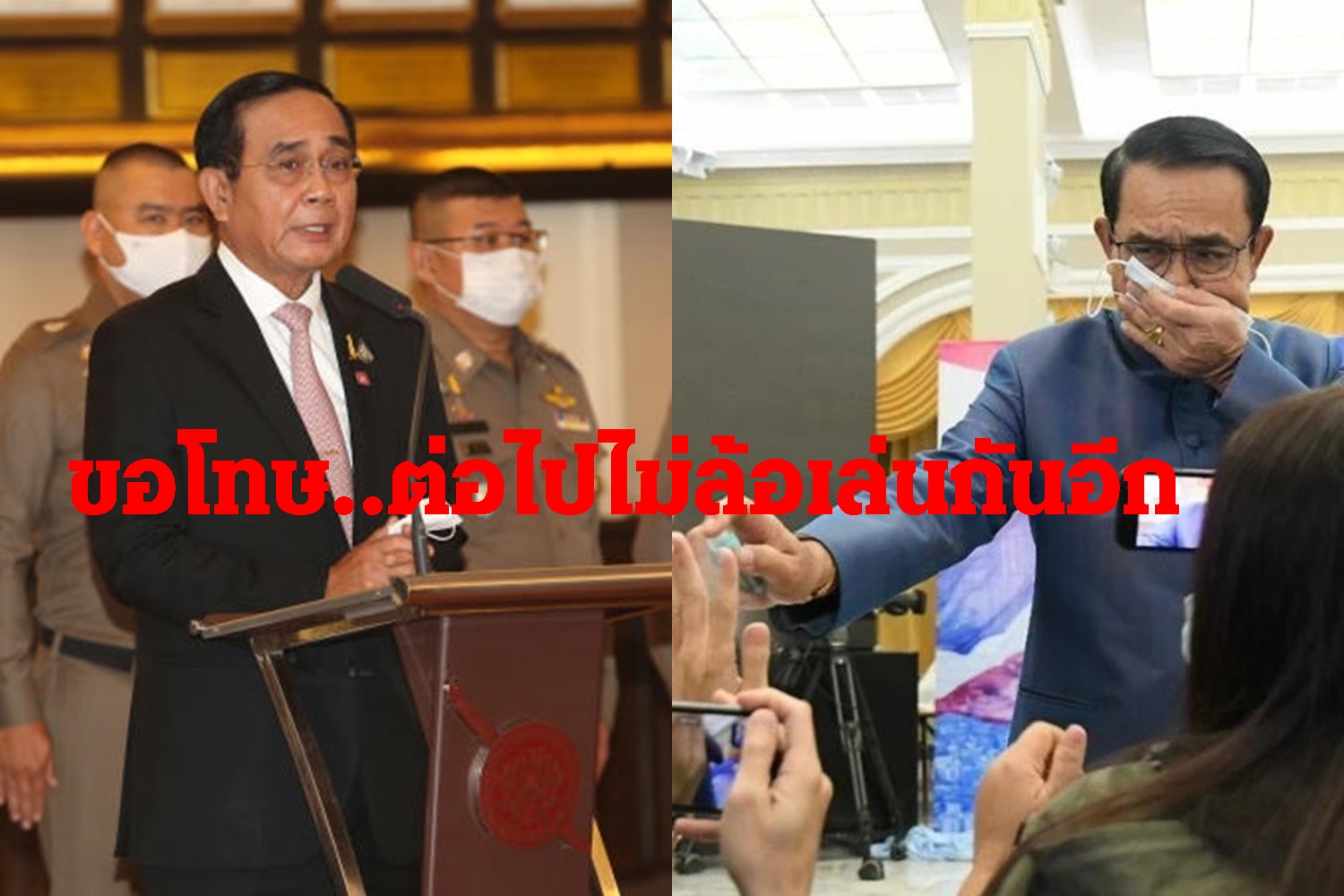 "ขอโทษแล้วกันน่ะ..ต่อไปไม่ทำอีก" บิ๊กตู่จบประเด็นดราม่าฉีดสเปรย์แอลกอฮอล์ใส่ผู้สื่อข่าวประจำทำเนียบฯต่อไปจะไม่ล้อเล่นกัน