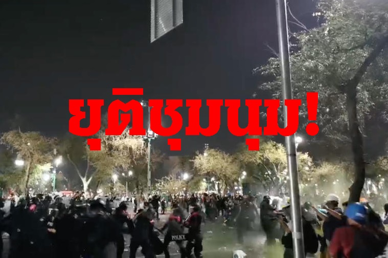 กลุ่ม REDEM ยุติชุมนุมสนามหลวง เจ้าหน้าที่ตำรวจยึดพื้นที่คืนได้ทั้งหมด มวลชนถอยร่นเชิงสะพานสมเด็จพระปิ่นเกล้า